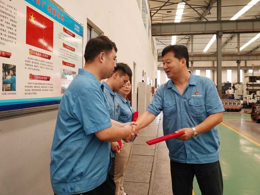 7月1日,在慶祝中國共產黨成立104周年之際,中船河柴黨委副書記、總經(jīng)理王正祥,黨委委員、紀委書記劉文凱化身“榮譽使者”,走進車間廠房、辦公室等,把“先進基層黨組織”“優(yōu)秀共產黨員”和“優(yōu)秀黨務工作者”的證書送到受表彰者手中,以別開生面的形式讓這場表彰既有溫度,又有力量。